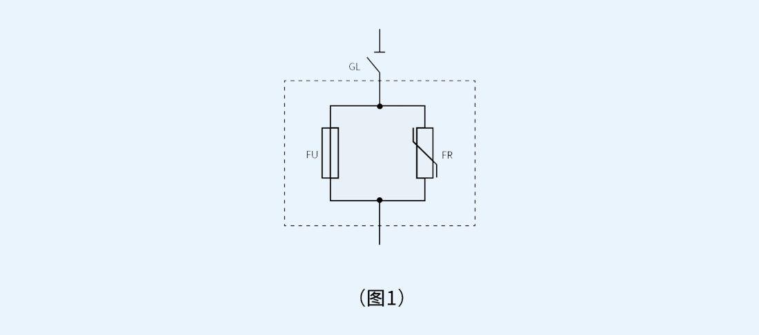 高压限流熔断器组合保护装置如图1虚框中所示,它主要由高压限流熔断器FU和非线性电阻FR组成,简称FUR。