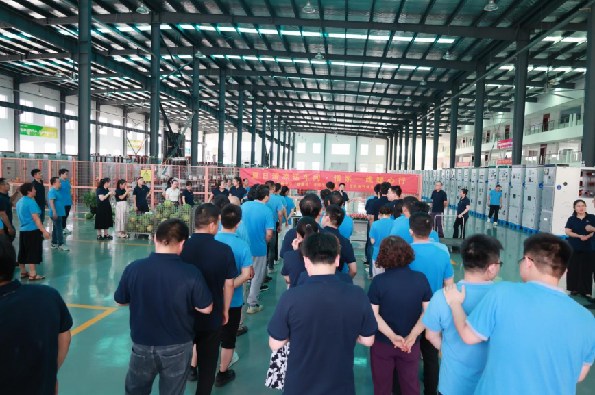 7月8日,炎炎夏日送关怀,350vip浦京电气党支部携手营销中心温情启动“夏日清凉送车间·情系一线暖心行”活动。营销中心领导及党员代表深入生产一线,为辛勤工作的员工们送上了西瓜、矿泉水、冷饮等降温物资,用实际行动传递组织的关怀与夏日的清凉,进一步增强了团队的凝聚力与向心力,让一线员工感受到了350vip浦京家的温暖与企业的深情厚谊。