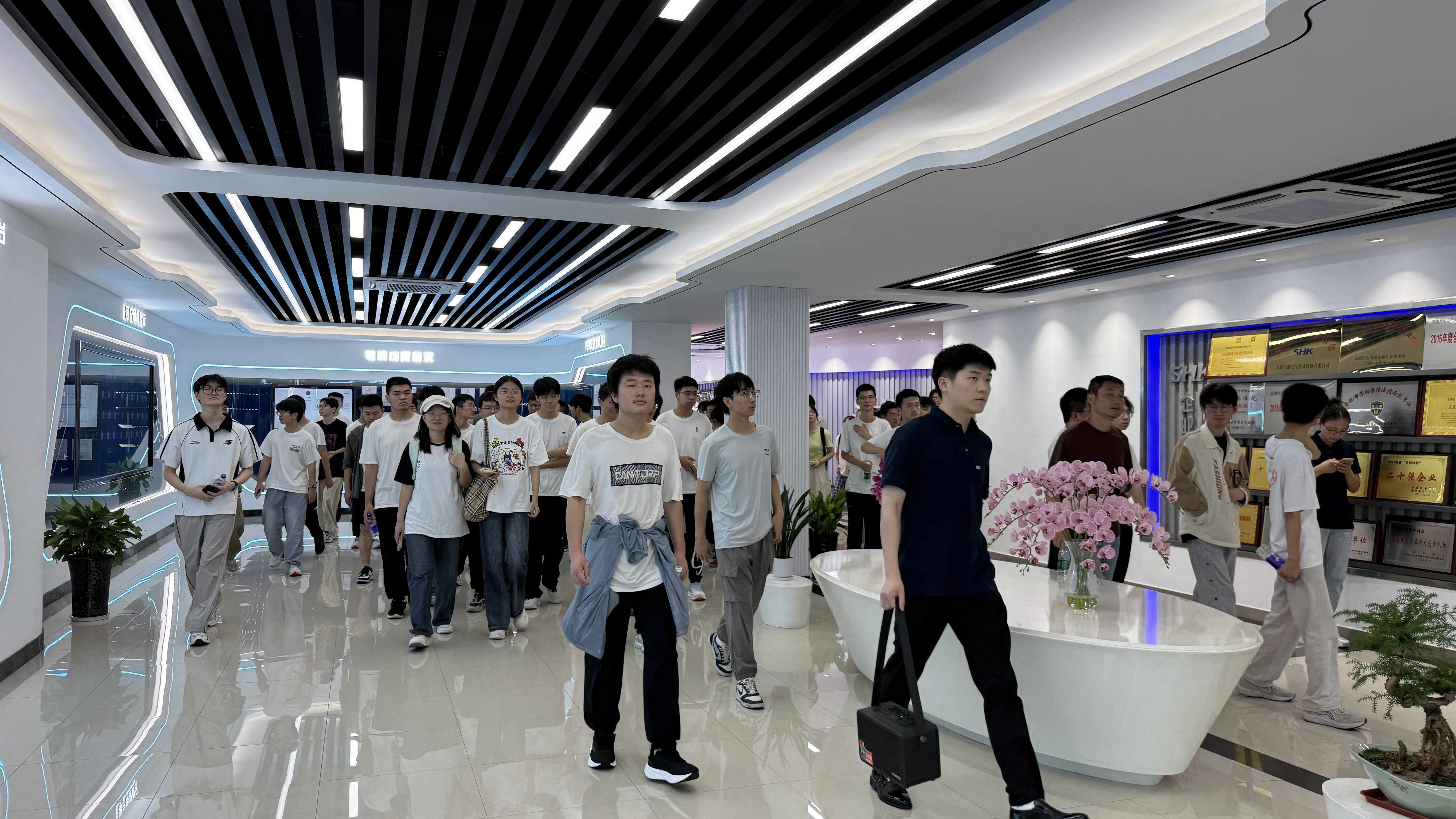 学生们参观了公司展厅,了解企业发展历程,核心技术及产品应用场景,随后进入生产车间实地了解生产制造等环节,通过实地观察,接触真实职场环境,将课堂知识转化为具体场景中的应用,帮助其深化专业理解。此次认知实习活动加强了校企联动,推动产教融合发展,共同为我国人才培养助推力量。