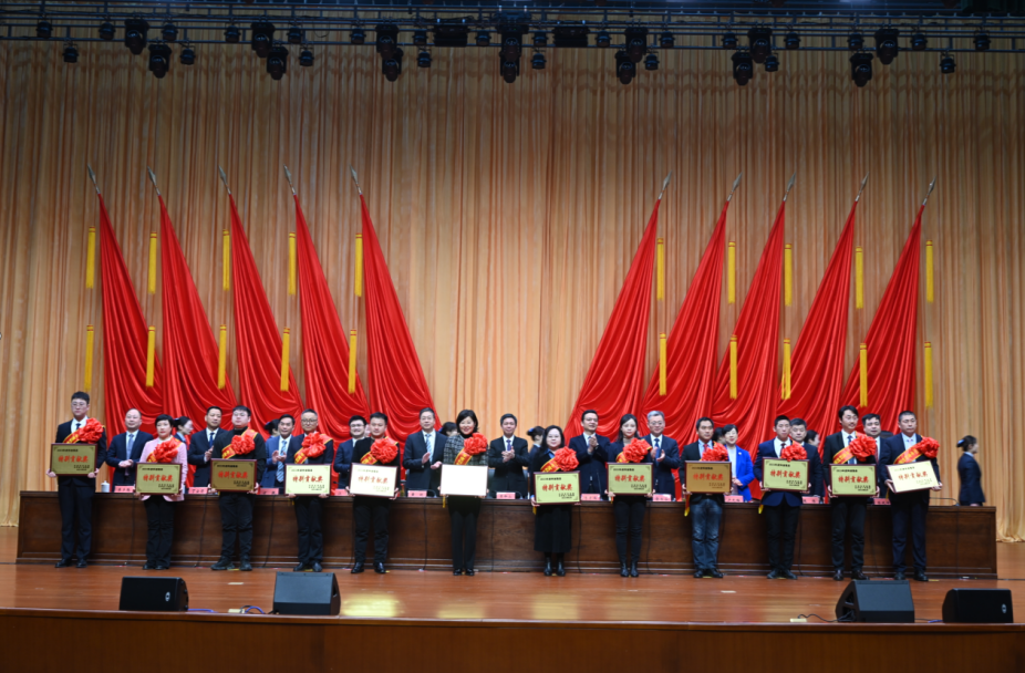 2月27日,长丰县打造一流营商环境暨“拼经济、强能级”大会召开,对2023年度长丰县企业贡献情况通报表扬,我司350vip浦京电气分别获得“科创强县特别贡献奖”、“民营企业50强”两项殊荣,并作为代表企业上台接受表彰及授牌。