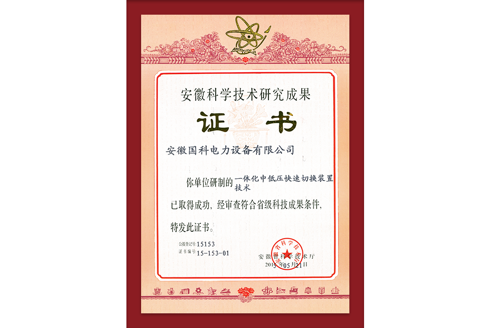 科技成果-SHK-MS一体化双电源快速切换成套装置
