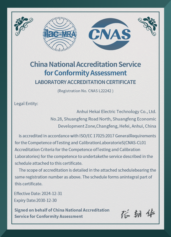 公司投资5000多万元建立了技术指标在同行中领先的:176kA大容量开断合成试验平台;配电网接地故障真型试验平台;15ms双电源快切试验平台;16000A温升试验平台等六大试验平台。公司实验中心获得了CNAS认可。
