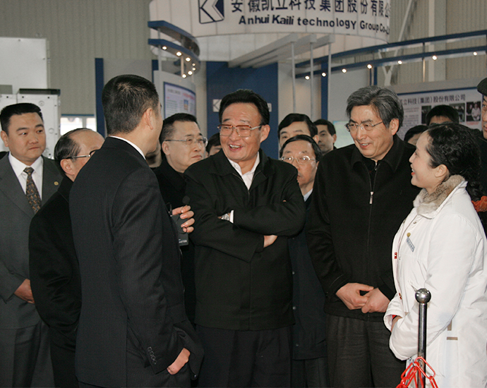 原中共中央政治局常委贾庆林(中)在原安徽省委常委,合肥市委书记、市人大常委会主任车俊等领导的陪同下莅临公司视察