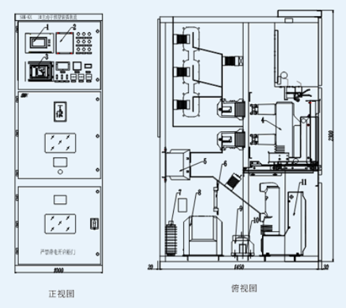 户内式10kV柜体结构及参考尺寸见下图