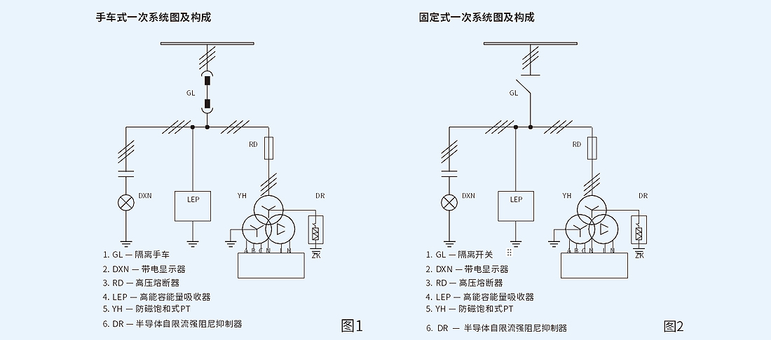 产品系列:I表示普通型,选用组合式过电压保护器、抗饱和电压互感器;Ⅱ表示增强型,选用高能容能量吸收器、抗饱和电压互感器配导体式自限流强阻尼抑制器。